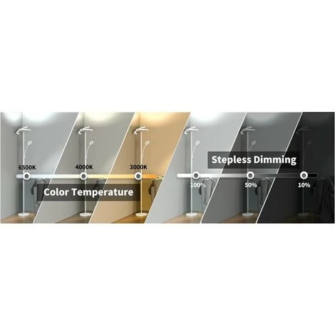 Lampadaire sur pied salon avec une gradation en continu (5% -100%), vous pouvez avoir une luminosité souhaité en appuyant sur la télécommande ou la touche tactile
