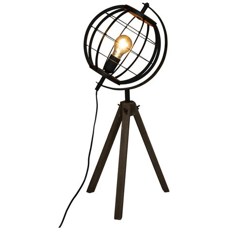 Atmosphera – Lampe trépied en Métal et Bois de Paulownia H 68 cm (-)