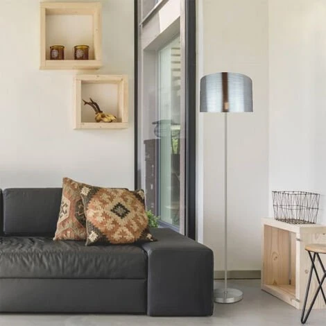 Lampadaire design en métal chromé abat-jour gris fumé E27 60W