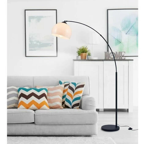 DAISY Lampadaire Arc Métal Noir, Réflecteur Acrylique Blanc, Dimensions : 30x110x170H, ampoule E27 40W non fournie