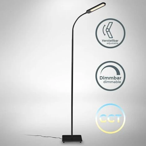 B.K.Licht lampadaire salon, platine LED 6,5W, luminosité réglable, tête flexible, choix de lumière: blanc chaud, neutre ou froid, fonction TOUCH, lampadaire moderne chambre bureau salle à manger