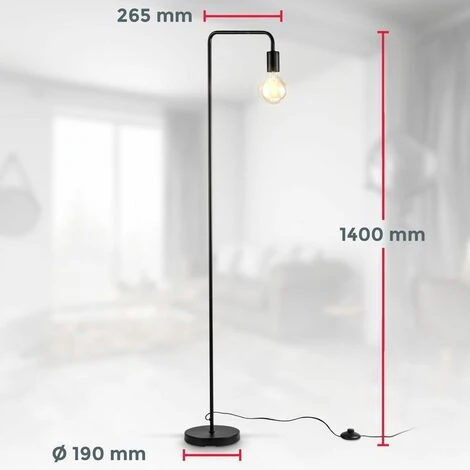 B.K.Licht I Lampadaire rétro design I Hauteur 140 cm I une douille E27 I interrupteur à pied I métal I noir mat I sans ampoule