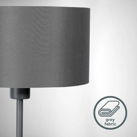 B.K.Licht I Lampadaire tissu gris I douille E27 I pour 1 ampoule I Abat-jour en tissu 30 cm I Câble de 140 cm avec interrupteur à pied I livré sans ampoule