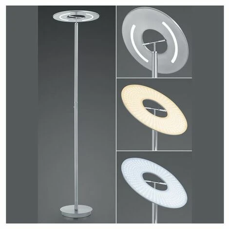 Lampadaire à LED en nickel mat avec pièces contrastantes chromées.