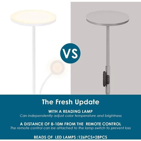 【Lampadaire 2-en-1】Le lampadaire sur pied salon LED a une lumière principale 25 W et une lampe de lecture 7 W; la lampe principale peut être ajustée à 350 degrés dans la direction horizontale et à 85 degrés dans la direction verticale pour éclairer différentes zones de la pièce. La lampe de lecture sur le côté peut être librement ajustée à l’angle requis, ce qui est très approprié pour la lecture et le travail. 【Température de couleur et gradation en continu】Le lampadaire a 3 températures de couleur: 3000K (lumière chaude), 4000K (lumière blanche froide), 5000K (lumière du jour blanche) et prend en charge la gradation continue. Cela peut répondre à vos différents besoins d’éclairage dans différentes situations. Les ampoules LED qui consomment moins d’énergie sont durables et n’endommageront pas vos yeux. 【Télécommande et commande tactile】Le lampadaire de la chambre a un bouton tactile sensible au centre du corps de la lampe, et vous pouvez effectuer tous les réglages. Avec la télécommande incluse, vous pouvez facilement contrôler le lampadaire depuis le canapé ou le lit. La distance maximale que la télécommande peut contrôler à l’intérieur est de 10 mètres. 【Stable et sûr】Le lampadaire LED est fait de fer + métal + plastique de haute qualité, stable et sûr pour travailler. Il s’adapte à votre maison sans prendre trop de place, comme une chambre, un salon, un couloir, un bureau, etc. 【Installation simple】Aucun autre accessoire ou outil n’est requis, vous pouvez l’assembler facilement. Veillez à ne pas endommager les fils en raison d’une traction excessive pendant l’assemblage. Conseil d’installation: Tenez la partie principale de la perche et assemblez-la de haut en bas.