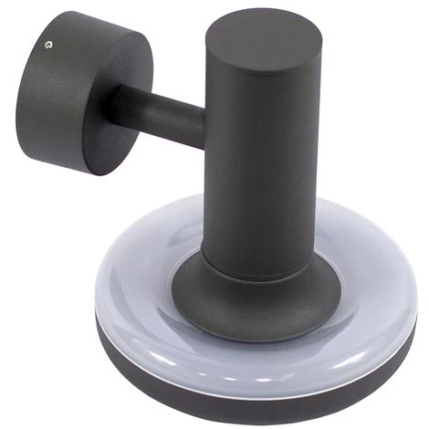 Applique murale LED pour extérieur (IP54), de couleur gris clair. Moderne et originale avec son chapeau arrondi, elle intègre une LED blanc chaud 3000K offrant une luminosité de 250 lumens pour 5W de consommation seulement.