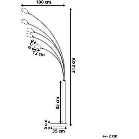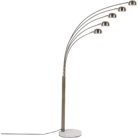 Lampadaire contemporain doré. Cette lampe de sol cintrée d’inspiration rétro est idéale pour éclairer et créer un point central dans votre salon ou votre chambre à coucher. Conçue avec 5 lampes réglables, elle fournit une lumière directe pour la lecture ou l’écriture, tandis que la base en marbre assure sa stabilité.