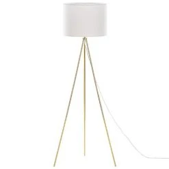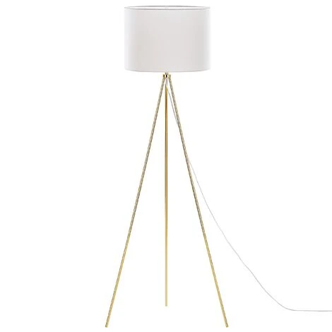 Lampadaire à trépieds blanc et doré au style moderne. Simplicité, élégance et modernité, ces trois mots définissent parfaitement ce lampadaire. Ses trois longues jambes blanches soutiennent l’abat-jour moderne qui diffusera avec élégance sa lumière dans votre intérieur. Ce lampadaire a été fabriqué avec le plus grand soin et le souci du détail. Cette lampe sera donc parfaite pour rajouter une touche de design à votre intérieur.
