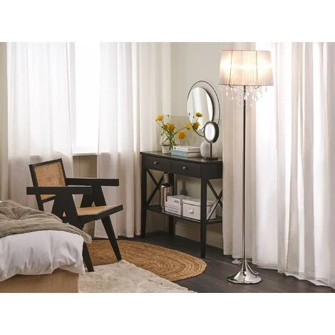 Lampadaire d’intérieur avec abat-jour gris au style luxueux . Offrez-vous un éclairage parfait ! Ce lampadaire d’intérieur est composé d’un abat-jour gris clair au style luxueux avec des cristaux pendentifs. Combiné à un poteau en métal argenté, elle donne une touche d’élégance à n’importe quelle pièce, que ce soit dans un salon, un coin lecture ou une chambre. Il est équipé d’un câble transparent avec interrupteur à pied pratique.