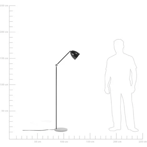 Luminaire sur pied noir au look moderne. Ce lampadaire en métal blanc représente un style à la fois minimaliste et moderne. Sa forme subtile du bras et son abat-jour arrondi et courbé s’intègrent admirablement avec sa base ronde en béton gris clair parfaitement stable. Le bras lumineux pratique est doté d’un joint flexible de couleur argenté, avec lequel le lampadaire peut être ajusté selon vos souhaits et peut être orientée vers plusieurs directions pour assurer le meilleur éclairage possible ! La lampe est équipée d’un câble noir avec interrupteur et adaptée aux ampoules E27 avec la puissance maximale de 40W. L’ampoule n’est pas incluse.