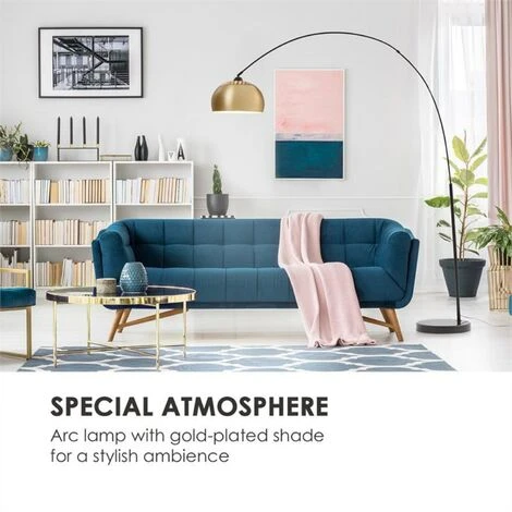 Avec son abat-jour doré, la lampe arquée Besoa Amara donne à chaque pièce un éclat spécial. L’abat-jour pivotant garantit également des conditions d’éclairage idéales à tout moment. Malgré son apparence subtile et en filigrane, l’éclairage de la pièce est toujours bien ancrée – car la solide base en marbre noir donne à la structure arquée une stabilité maximale. Équipée d’une douille standard E27, l’Amara peut également être utilisée avec de nombreux types d’ampoules, tandis que son cordon d’alimentation de 2 mètres de long permet un grand rayon d’efficacité.