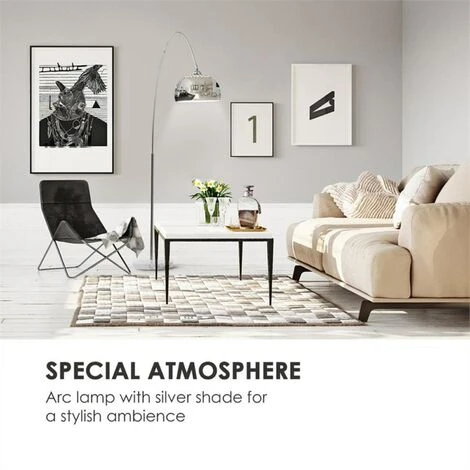 Avec son abat-jour argenté, la lampe arquée Besoa Nael donne à chaque pièce un éclat spécial. L’abat-jour pivotant garantit également des conditions d’éclairage idéales à tout moment. Malgré son apparence subtile et en filigrane, l’éclairage de la pièce est toujours bien ancrée – car la solide base en marbre blanc donne à la structure arquée une stabilité maximale. Équipée d’une douille standard E27, la Nael peut également être utilisée avec de nombreux types d’ampoules, tandis que son cordon d’alimentation de 2 mètres de long permet un grand rayon d’efficacité.