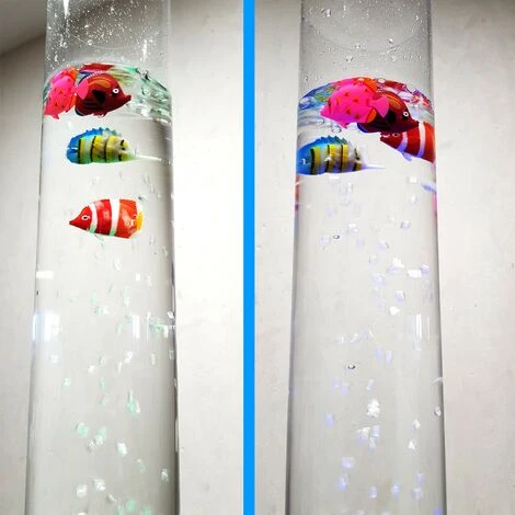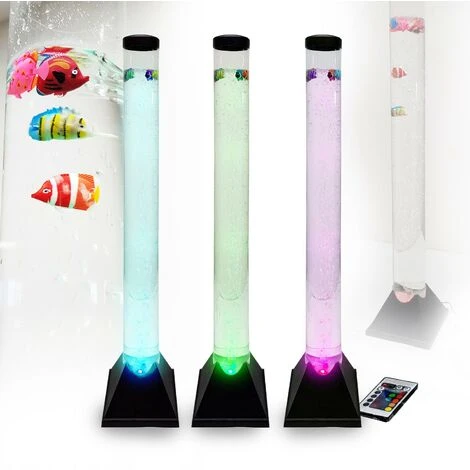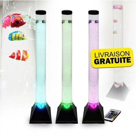 Cette impressionnante colonne à bulles de 1m de hauteur est idéale pour créer une atmosphère relaxante. Le flux des bulles est variable et le tout est illuminé par des LED changeant de couleur. Le choix de la couleur peut être effectué grâce à la télécommande qui permet également d’atténuer les couleurs et de les faire défiler. Pour plus d’effet, le tube est livré avec des poissons tropicaux artificiels très réalistes qui flottent sous la lumière. Cette colonne est fabriquée avec des matériaux robustes, une alimentation secteur est fournie.