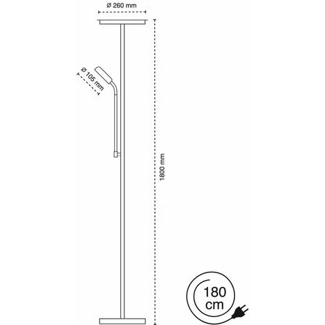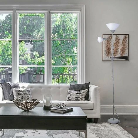 Lampadaire à deux lumières, pour ampoules. La lumière principale fonctionne avec une ampoule E27 et la lumière du lecteur fonctionne avec une ampoule E14.