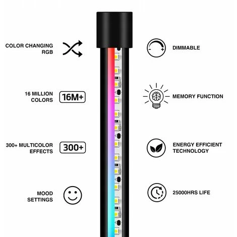 Changement de couleur par télécommande: les éclairages d’angle à LED minimalistes peuvent être modifiés à distance (RVB) par télécommande.Endroit installable: Il dispose d’une simple lampe d’angle LED à changement de couleur, qui peut être parfaitement installée dans le coin, ce qui convient très bien au coin du salon ou de la chambre.Contrôle pratique: utilisez la télécommande pour changer la couleur de la lumière RVB.Longue durée de vie: source lumineuse LED 20 W, avec une durée de vie moyenne de 15 000 heures.Gain de place: le lampadaire simple et peu encombrant est parfait pour tous les coins.Spécification: