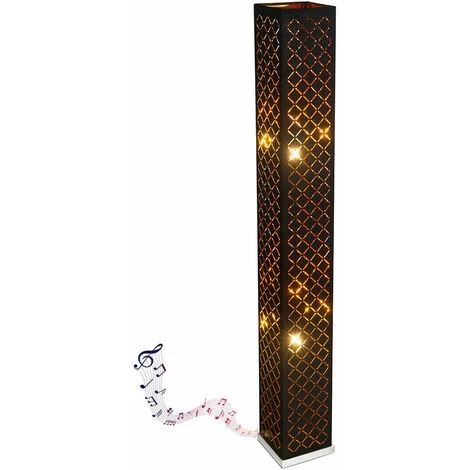 Description Le lampadaire carré (15×15 cm) séduit par son design individuel et élégant. Le lampadaire de 1,18 mètre de haut se compose principalement d’un abat-jour en textile noir décoré d’estampes décoratives élégantes, qui est recouvert de feuille d’or à l’intérieur. L’interrupteur marche / arrêt standard et le c&;ble de connexion de 1,8 mètre de long la rendent flexible à utiliser. Cette lampe dispose d’un haut-parleur intégré de 5 watts. D’autres lampes de la même série de modèles pourraient compléter le tableau dans votre région. Les lampes LED RVB peuvent être transformées en Set différentes couleurs et assurent ainsi un éclairage d’ambiance. Par rapport aux lumières normales, les spots LED consomment une quantité minimale d’électricité et sont encore plus faibles en consommation Lumières à économie d’énergie . Cela protège l’environnement et votre portefeuille. Deux lampes LED YRGB de haute qualité à économie d’énergie, y compris la télécommande pour la lumière blanche et le contrôle RVB, sont inclus dans la livraison. Détails de la lampe </ div>• Type de lampe : Lampadaire