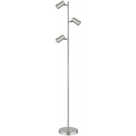 la description Ce lampadaire de 154 cm s’intégrera à merveille dans vos intérieurs. Le lampadaire en métal argenté se compose d’une base métallique ronde à laquelle est fixée une tige avec trois douilles GU10 orientables et revêtues de métal. Ceux-ci peuvent être équipés de sources lumineuses LED de votre choix, vous offrant la possibilité de déterminer individuellement la couleur et la luminosité de la lumière. Il dispose également d’un interrupteur inclus avec lequel la lumière peut être facilement allumée et éteinte. Vous pouvez compléter le tableau d’ensemble de vos quatre murs avec d’autres modèles de la même série. Les ampoules ne sont pas comprises dans la livraison. Lampe de détail • Type de lampe : lampadaire