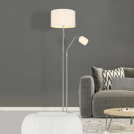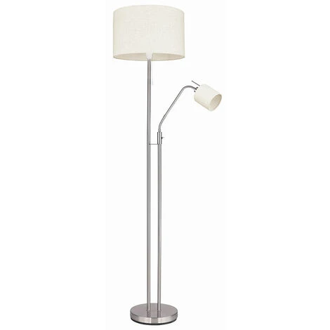 la description Ce lampadaire apportera une belle touche à votre intérieur avec son design élégant en métal nickel mat et tissu couleur sable. Le lampadaire de 175 cm de haut a un abat-jour textile rond plus grand (ø 40 cm) et un spot plus petit, qui a également un abat-jour textile et peut être pivoté. Vous pouvez équiper les deux d’ampoules (1x E27, 1x E14) de votre choix, ce qui vous laisse la possibilité de déterminer la couleur et la luminosité de la lumière selon vos idées. Vous pouvez compléter l’image globale de vos quatre murs avec d’autres articles de la même série. Les ampoules ne sont pas comprises dans la livraison. Lampe de détail • Type de lampe : lampadaire • Matériau : métal • Couleur : nickel mat • Abat-jour : textile, couleur sable
