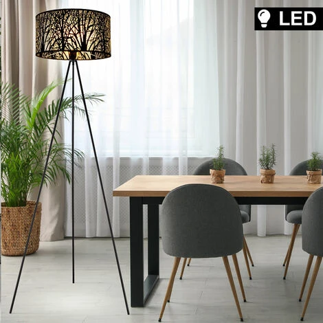Description Le lampadaire BARZI en métal noir et plastique impressionne par son bel abat-jour décor arbre (Ø 38 cm) .</ div> Cette belle lampe décorative et fonctionnelle de 149 cm de haut s’allume et s’éteint gr&;ce à un interrupteur. Le c&;ble de 1,6 m de long permet de concevoir de manière flexible la position de ce lampadaire à trois pieds. Par rapport aux lampes normales, les spots LED consomment un minimum quantité d’électricité et sont encore plus faibles en consommation que les lampes à économie d’énergie. Cela protège l’environnement et votre portefeuille. Une source lumineuse LED de haute qualité et à économie d’énergie est incluse. Détails lampe • type de lampe : lampadaire
