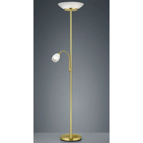 la description Design simple et modernité intemporelle. Le lampadaire GERRY offre de nombreuses applications et combinaisons possibles. La lampe est idéalement placée à côté du canapé, car en plus de l’uplighter comme source lumineuse principale, un bras de lecture flexible assure le meilleur résultat d’éclairage possible. Celui-ci peut être spécifiquement aligné de sorte que l’incidence souhaitée de la lumière puisse être librement sélectionnée. Le projecteur a une hauteur de 180 cm et un diamètre de 34 cm. Grâce au design de couleur classique en laiton mat, la lampe peut être combinée avec de nombreux styles d’ameublement. Par rapport aux lampes normales, les spots LED consomment une quantité minimale d’électricité et consomment encore moins que les lampes à économie d’énergie. Cela protège l’environnement et votre porte-monnaie. Trois ampoules LED de haute qualité à économie d’énergie sont incluses dans la livraison. Lampe de détail • Type de luminaire : lampadaire • Matériau : métal, laiton mat • Abat-jour : verre, blanc • Degré de protection : IP20 • Souple • commutable séparément • Contrer • Diamètre x hauteur en cm : 34 x 180 • Poids : 6 kg éclaireur • Douilles : 2 x E27 • Ampoule incluse : oui • Puissance de la lampe : 2 x 11 watts • Flux lumineux : 2 x 1 055 lumens • Couleur de la lumière : blanc chaud • Tension : 230 V, 50 Hz lampe de lecture • Douille : 1 x E14 • Ampoule incluse : oui • Puissance de la lampe : 1 x 5,5 watts • Flux lumineux : 1 x 470 lumens • Couleur de la lumière : blanc chaud • Tension : 230 V, 50 Hz Détails illuminant uplighter • Type de source lumineuse : LED SMD