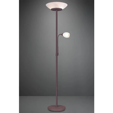 DescriptionLe lampadaire Gerry impressionne par son design et sa fonctionnalité.La lampe de couleur rouille est un véritable accroche-regard et les abat-jour blancs soulignent le design simple mais spécial. La petite lampe de lecture peut être alignée individuellement à l’aide du bras flexo. Les deux sources lumineuses peuvent être commutées séparément.Par rapport aux lampes normales, les spots LED consomment une quantité minimale d’électricité et sont réellement consommés sous des lampes à économie d’énergie. Cela protège l’environnement et votre portefeuille.Trois lampes LED de haute qualité à économie d’énergie sont incluses.Détails luminaire• type de luminaire : lampadaire• matériau : métal, rouille• abat-jour : verre, blanc• classe de protection : IP20• flexible• commutable séparément• switch• diamètre x hauteur en cm : 34 x 180• poids : 6 kgPlafonniers• douilles : 2x E27• ampoules incluses : Oui• puissance ampoules : 2x 5,5 watts• flux lumineux : 2x 470 lumens• couleur de la lumière : blanc chaud• tension : 230V, 50Hzlampe de lecture• douille : 1x E14• ampoules incluses : oui• ampoules de puissance : 1x 5,5 watts• flux lumineux : 1x 470 lumens• couleur de la lumière : blanc chaud• Tension : 230 V, 50 HzDétails sources lumineuses washlights de plafond• Type de source lumineuse : LED