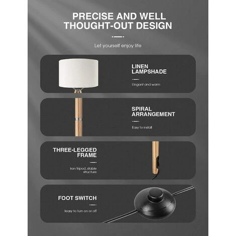 - ABAT-JOUR DE HAUTE QUALITÉ EN LIN : Le lampadaire est fourni avec un simple abat-jour cylindrique en tissu. Lorsque l’interrupteur au pied est activé, la couleur de la toile de jute est très chaude.