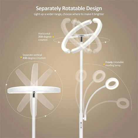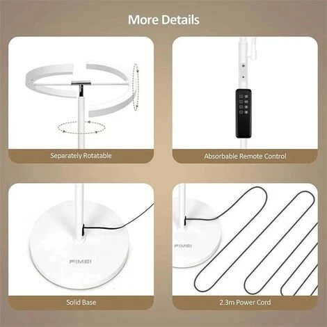 Lampadaire a 4 températures de couleur: 3000K (lumière chaude), 4000K (lumière blanche froide), 5000K (lumière du jour blanche), 6000K (lumière du jour blanche, légèrement bleue), et prend en charge la température de couleur en continu et atténuation.