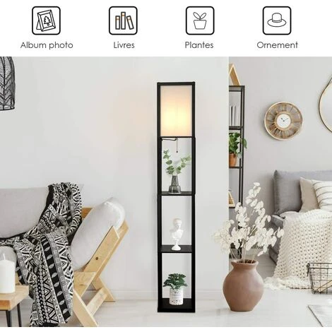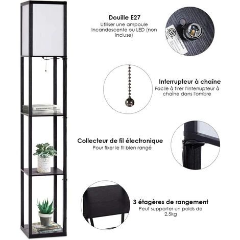 - Pratique et stable : fabriqué à partir de MDF massif, cette lampe est robuste et stable. Les séparateurs intermédiaires peuvent supporter le poids de 10 kg. Avec sa base solide et conçu en forme verticale, le meuble ne bascule pas. L’interrupteur à tirette est conçu pour activer et éteindre en toute facilité la lumière.