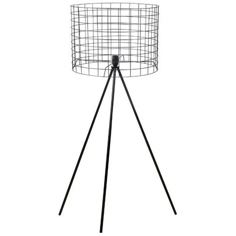 Esprit industriel pour ce lampadaire en metal avec trepied, il deviendra la piece maitresse de votre decoration. Son abat-jour imposant et grillage s’inspire du style loft elegant. TREPIED EN METAL NOIR – ABAT-JOUR EN METAL FILTE NOIR