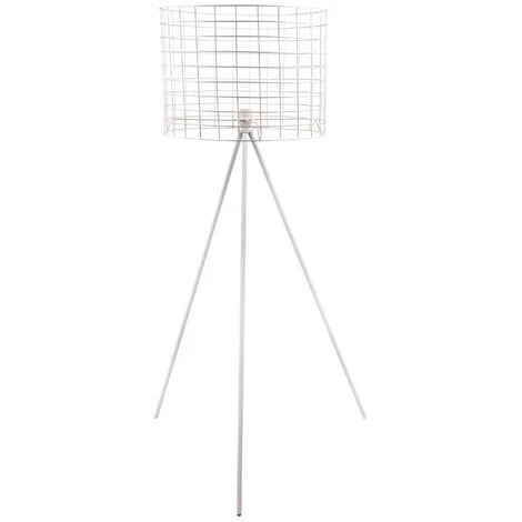 Esprit industriel pour ce lampadaire en metal avec trepied, il deviendra la piece maitresse de votre decoration. Son abat-jour imposant et grillage s’inspire du style loft elegant. TREPIED EN METAL BLANC – ABAT-JOUR EN METAL FILTE BLANC