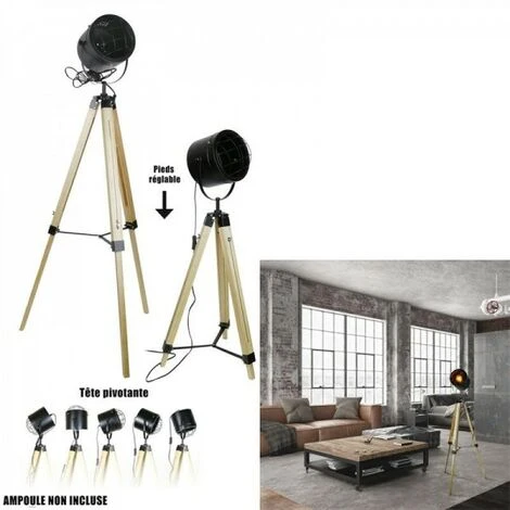 lampadaire trepied industriel d20x142cm_x000D_- Assortiment: luminaire, luminaire_x000D_- Marque: HOME DECO FACTORY_x000D_- Dimension (cm): 142x68x58_x000D_- Matériaux: bois – pin_x000D_- Couleurs: noir-beige