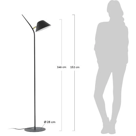 Lampadaire en métal avec abat-jour articulée. Pour ampoule E14 non comprise.