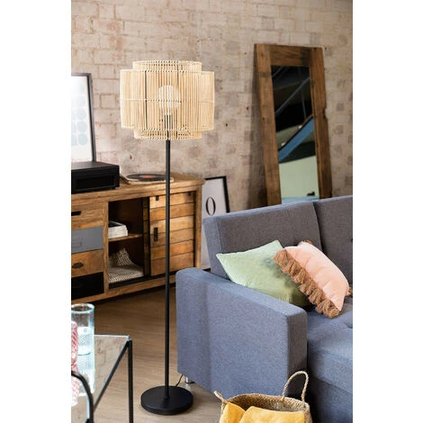 Les lampadaires sont des accessoires de décoration qui, en plus d’éclairer, apportent de la chaleur à votre intérieur. Notre lampadaire Kapua combine 2 abat-jour cylindriques en bamboo de différentes tailles qui contrastent parfaitement avec sa base et son pied en fer. Cette lampe, vous fera profiter d’un éclairage parfait dans votre chambre, votre entrée ou votre salon, créant une atmosphère plus chaleureuse et accueillante. Un style d’inspiration bohème qui s’intègre parfaitement dans n’importe quel style décoratif. Fonctionne avec une ampoule à douille E-27 (non incluse). Associez-la à la lampe de table Kapua, toutes deux de la même collection et créez une atmosphère unique. Nous vous recommandons de le nettoyer à l’aide d’un chiffon humide, en évitant l’utilisation de produits chimiques. Dimensions (Hauteur x Largeur x Profondeur): 160 cm x 40 cm x 40 cm IMPORTANT : Le service standard porte-à-porte ne comprend pas la livraison et la collecte des marchandises au domicile du client, qui sont à la charge de ce dernier. Il est possible que le livreur aide volontairement à la livraison de la marchandise (ceci est totalement volontaire pour le livreur et la société de transport et ne relève pas de la responsabilité de Sklum).L’assemblage n’est pas non plus inclus.