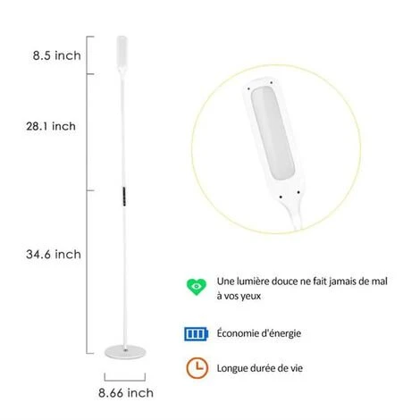 Avec le col de cygne flexible, la tête de la lampe peut être tournée de 360 °.L’installation de la lampe est très simple et il est très pratique de la stocker ou de la transporter en même temps.Le beau design Convient pour les bureaux, les chambres, les salons, etc. en plus Un support et une base en métal, le lampadaire peut être placé de manière stable sur le sol.