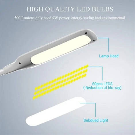 La source de lumière LED à haute efficacité de 9W est économe en énergie et respectueuse de l’environnement.Et c’est durable, stable et sûr. Donne une Haute qualité de vie.Parce que la lampe de lecture donne une lumière sans scintillement et sans éblouissement, Donc vous pouvez lire dans les lumières pendant longtemps,Ne vous inquiétez pas de la lumière va rendre vos yeux fatigués.