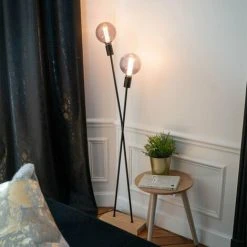 Pratique & douille E27 : Ce lampadaire rétro dispose de deux poutres en bois, chacune avec un câble avec une douille E27 attachée. Convient aux ampoules E27 normales avec un maximum de 40 watts. Cordon d’alimentation du lampadaire avec 2 commandes