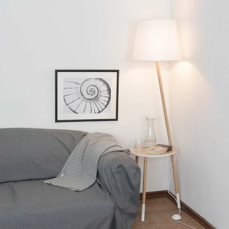 - DescriptionLampadaire sur trépied au design scandinave avec table en bois H:152cm E27 abat-jour en tissu blanc idéal pour le salonLe lampadaire est en bois et l’abat-jour est en tissu blanc.Culot: 1 x E27 avec une puissance max. de 60 WLargeur: 430 mm | Hauteur: 1510 mm (HxØ: 50 x 42 cm)Lampe trépied de style scandinave avec étagère supplémentaire en bois véritable. L’élégance du style scandinave et le choix du bois mélangé harmonieusement avec l’utilisation de couleurs claires font de cette lampe un ornement délicat pour votre maison. Les caractéristiques simples et élégantes de la mode nordique sont toujours en vogue et constituent la solution parfaite pour donner à votre salon ou à votre chambre une quantité généreuse de lumière, sans sacrifier l’esthétique.Elle est également livrée avec une petite table très pratique et fonctionnelle.
