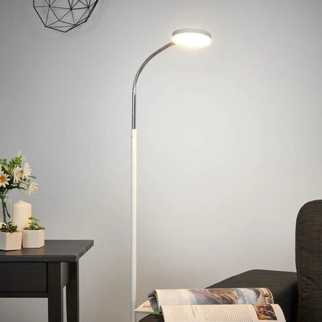 Le lampadaire LED Milow est blanc et est pourvu d’un col de cygne qui permet de régler confortablement la tête de lampe. Un excellent complément pour les intérieurs modernes.