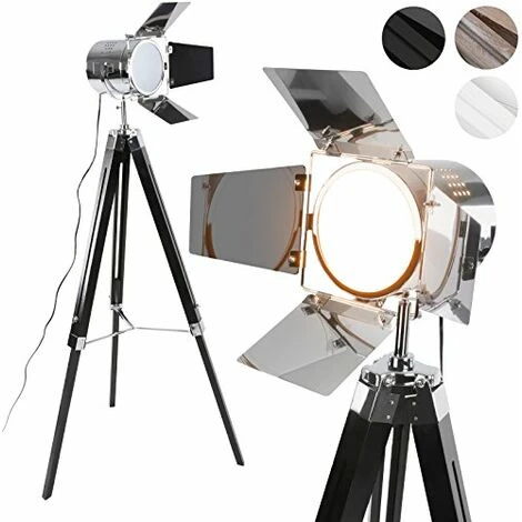 Avec son design qui rappelle les équipes professionnelles de cinéma ou de studio photo, ce lampadaire ajoute une touche unique à votre maison. La hauteur du trépied en bois est réglable. L’abat-jour est muni de 4 plaques en métal chromé et il est rotatif à 360°, alors la lumière peut être ajustée à votre goût. La combinaison du métal froid et du bois chaud fait de ce lampadaire un élément de décoration pour votre maison.