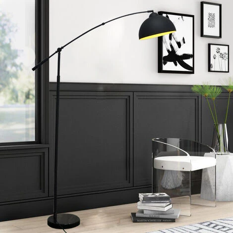 allie simplicité et design moderne pour Osasy lampadaire arqué en arqué en Bow ,vient suspendre en son extrémité un demi-globe bombé aux finitions noir et doré ,lampadaire trouvera son équilibre grâce à son socle en marbre. Une lampe à arc fournit à la fois une lumière fonctionnelle et atmosphérique dans le salon.