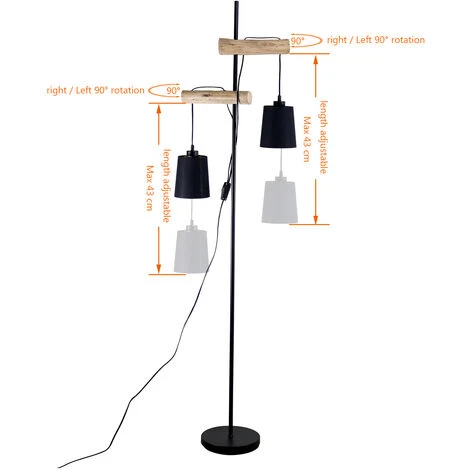 En détail :Couleur de l’abat-jour : noir & intérieur doré ,hauteur de lampe : 169 cm, largeur de la lampe : 20 cm, longueur du câble : 298cm. Abat-jour fabriqué pour adoucir les rayons et minimiser l’éblouissement, à travers l’abat-jour pourrait protéger vos yeux, amical pour votre famille, fournir une ambiance confortable. Le lampadaire dispose d’un interrupteur marche/arrêt directement sur le câble, vous pouvez contrôler l’allumage et l’extinction des deux ampoules séparément