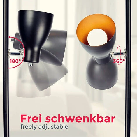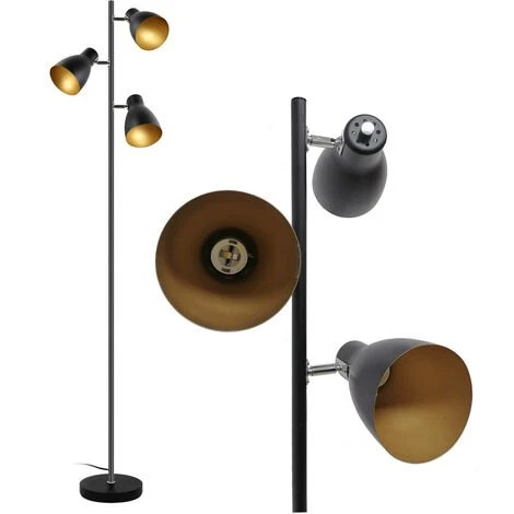 Design confortable et rétro : le lampadaire standard avec 3 points de lumière a un look rétro et une couleur noire mate principale. Les 3 abat-jours peuvent être inclinés et tournés pour diriger la lumière où vous le souhaitez. La partie interne de l’abat-jour dorée crée un effet lumineux agréable.