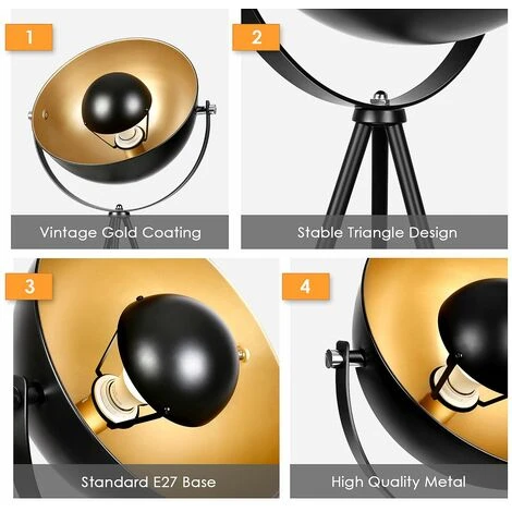 Applications uniques et étendues: La style projecteur de cinéma est une unique , montrant un charme personnel, attirant l’attention.L’abat-jour Black-Gold Golden Diffuse Reflection, qui atteint une luminosité suffisante et une lumière très douce. Le lampadaire Osasy convient très bien comme éclairage décoratif. Parfaitement pour votre salon, chambre à coucher, restaurant, studio, bureau, etc.