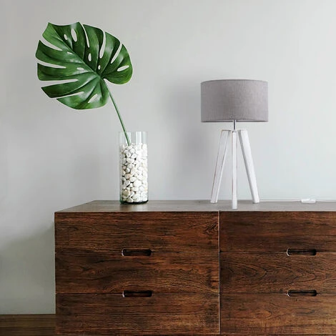 LE LUMINAIRE :Une touche vintage : ce luminaire élégant impressionne par son design tendance et apportera instantanément une note vintage agréable à votre pièce préférée. Son trépied solide, disponible en blanc, noir ou nature, lui confère un charme rustique et témoignera de votre bon goût, même éteint. Une fois allumé, son abat-jour, disponible en gris ou en blanc, diffuse une lumière élégante qui plongera votre intérieur dans une atmosphère chaleureuse, sans gêner ni aveugler. Disponible au choix en lampe de bureau ou en lampadaire, cette lampe chic trouvera sa place partout, au bureau comme au salon. Nous vous recommandons d’utiliser nos sources LED afin de réduire votre consommation d’énergie. Les sources lumineuses LED sont plus durables et économes en énergie que leurs homologues incandescents et halogènes.UN DESIGN EXCEPTIONNEL :Un choix toujours parfait : utilisé en lampe de bureau ou en lampadaire, cet accessoire chic au style vintage se caractérise par sa combinaison idéale de matériaux modernes et traditionnels. Fabriqué en bois ou en bambou, son support original crée une ambiance authentique, même éteint, que vient encore renforcer l’abat-jour en tissu malgré le caractère moderne du PVC. CARACTÉRISTIQUES TECHNIQUES : – Lampe de bureau ou lampadaire à une flamme, disponible en noir, blanc ou nature, en bambou ou en bois et tissu, 220-240 V / 50/60 Hz, classe de protection II, température ambiante maximale : 40 °C, puissance maximale 40 W- Variante lampe de bureau