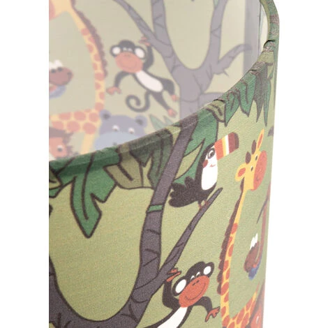 Jungle en folie dans la chambre d’enfant : Ces lampadaires séduisants et ludiques emmènent vos enfants pour un safari imaginaire dans leur propre chambre. Les animaux amicaux accompagnent vos enfants lors de ce voyage passionnant et sont les compagnons de jeu idéaux, tandis que les cimes vertes de l’abat-jour plongent la chambre d’enfant dans une lumière joyeuse et idyllique. Avec son pied ou le trépied, le luminaire est disponible en noir ou blanc et est extrêmement sûr, parfait pour la chambre d’enfant ! L’abat-jour existe en deux tailles, ce qui permet à ces beaux luminaires de trouver leur place partout. Nous vous recommandons nos ampoules LED pour réduire votre consommation d’énergie. Les ampoules à LED sont plus durables et plus économes en énergie que leurs homologues à incandescence et halogènes. Le luminaire peut être assemblé facilement, puis il suffit de monter l’abat-jour – terminé !