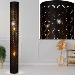 Lampadaire Design Salon Plafond Projecteur Anneau Découpes Lampe Sur Pied Noir Or Globo 15329S