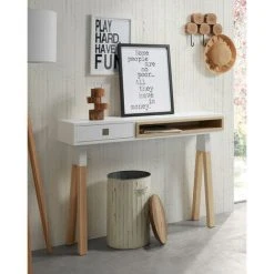 Kave Home – Lampadaire Riaz Blache En Bois Massif De Hêtre, Base En Acier Et 100% Coton – Blanc