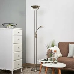 LINDBY LED Lampadaire à Intensité Variable ‘Danua’ En Métal Pour Salon & Salle à Manger – Argenté