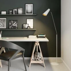 LUCANDE Lampadaire ‘Filoreta’ En Métal Pour Salon & Salle à Manger – Blanc, Laiton Brossé
