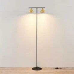 LUCANDE Lampadaire ‘Kartio’ En Métal Pour Salon & Salle à Manger – Noir Mat, Laiton Brossé